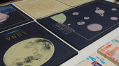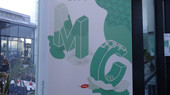 Dan mag ik mee de opslagruimte in, die vandaag ook dienst doet als donkere kamer. Het product waarop de inkt is gebaseerd, wordt gebruikt op landingsbanen, maar bij mmmMar zijn het dromerige katten en verre planeten die overdag licht opnemen en in het donker weer oplichten.