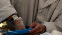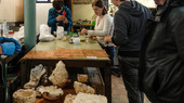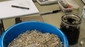 Ze experimenteert met zwamvlokken (mycelium) – hier in combinatie met Red Bull om het proces te versnellen.