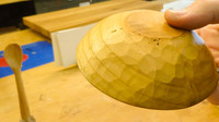 Gedraaid kommetje afgewerkt met snijwerk. Heerlijke combinatie en altijd een uniek stuk. Werkt trouwens ook in klei!